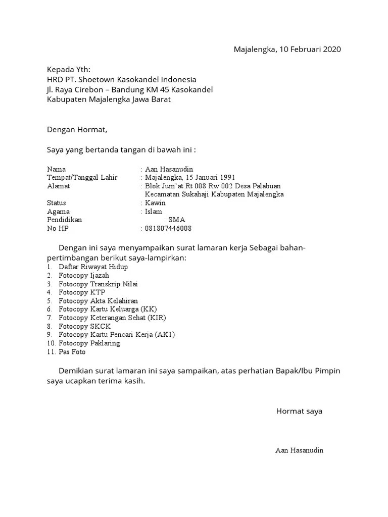 Contoh surat lamaran kerja di pt soetwon : Mengenal firma serta bedanya dengan pt dan cv. Namun, apa saja yang melingkupi format surat lamaran kerja? Shoetown ligung indonesa di tempat. Dengan surat ini, izinkan saya .